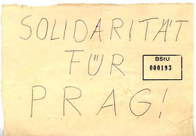 geschrieben und verteilt hatte („Es lebe das rote Prag!“, „Hoch